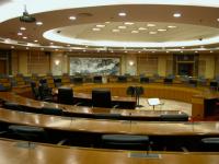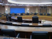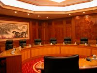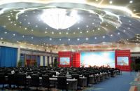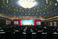 位于会议中心角楼二层,为四圈圆形会议厅,总面积340平方米。共有120个席位,配有会议发言、表决系统,远程会议系统,六种语言同声传译系统,120度三面投影设备和自动会议报到系统。适合召开各种形式的研讨会和论坛。