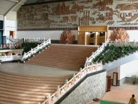位于鸡尾酒会花园东侧二层,建筑面积1000平方米。报告厅为剧院式设计,共有538个席位,配备有舞台灯光、音响和六种语言同声传译系统,并支持百兆的远程视频会议。此处不仅可以举办报告会、讲座、颁奖典礼,还可以举行文艺演出、放映电影。报告厅舞台后面还配备2个演员化妆间和1个贵宾休息室。