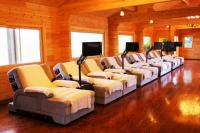 热带风情馆的整体风格以木结构建筑为主,清澈见底的泳池水环绕其间,还有椰子、枇杷、槟榔、芒果等热带植物相互掩映,打造了一处独具特色的养生中心。